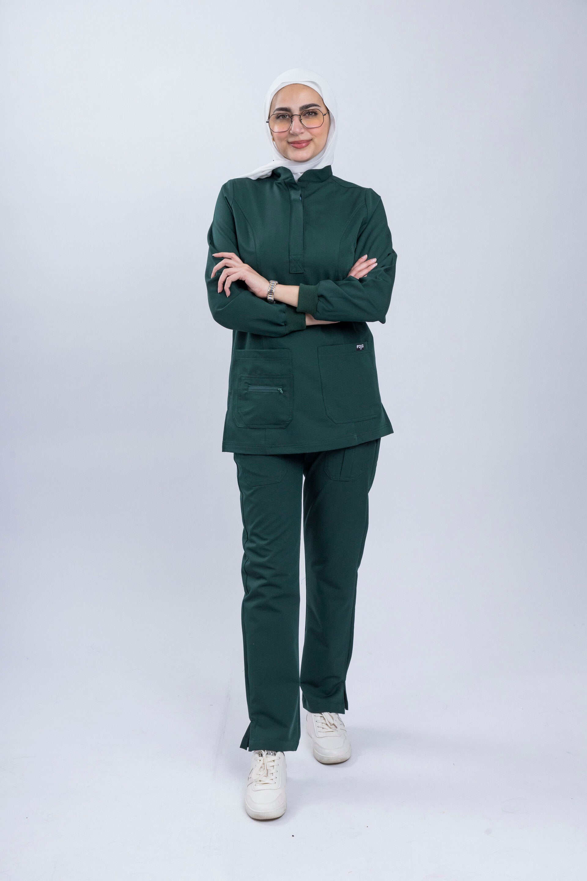 يعكس لون فورست غرين الثبات والقوة المستمدة من الطبيعة. لون غني ومتزن يعبّر عن النضج والطمأنينة، ويمنح الإطلالة الطبية مظهراً أنيقاً وخالداً يناسب مختلف البيئات المهنية.