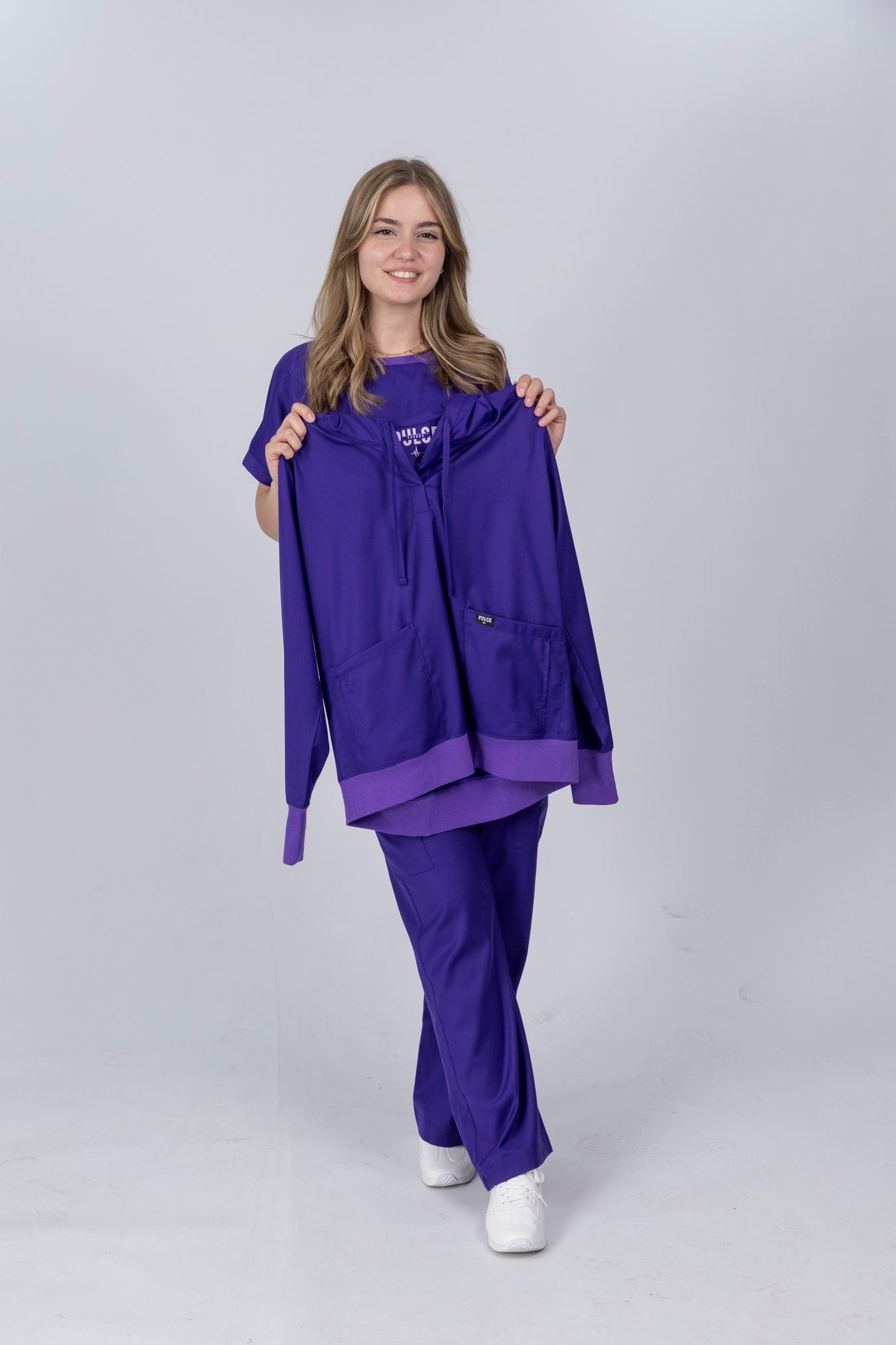 صُنع هذا السكرب من قماش عالي الأداء يتميز بالتهوية والمرونة والمتانة، ليضمن راحة مستمرة ولمسة نهائية راقية تثبت جودتها طوال ساعات العمل الطويلة.