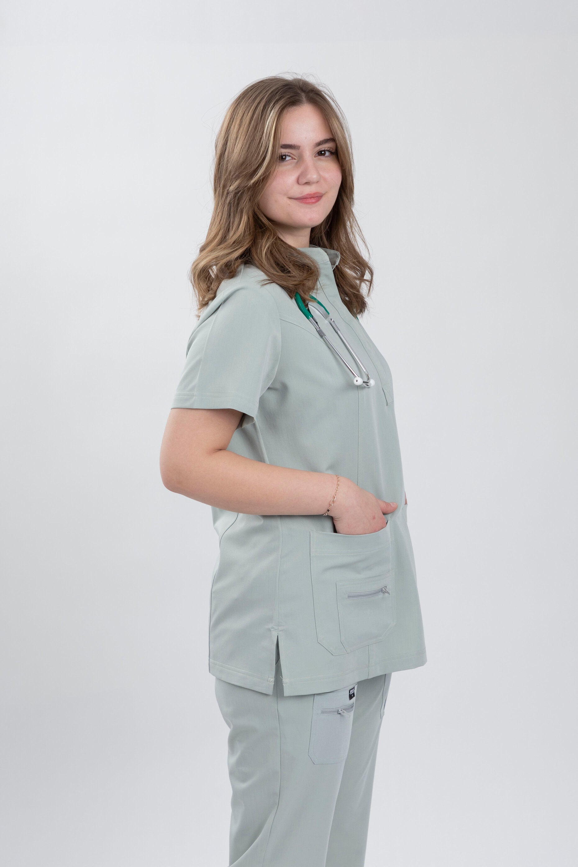 The Teal Mint color brings a refreshing sense of balance and clarity. Soft yet expressive, this tone reflects calm focus and modern femininity—adding a light, uplifting energy to clinical wear while remaining polished and professional.