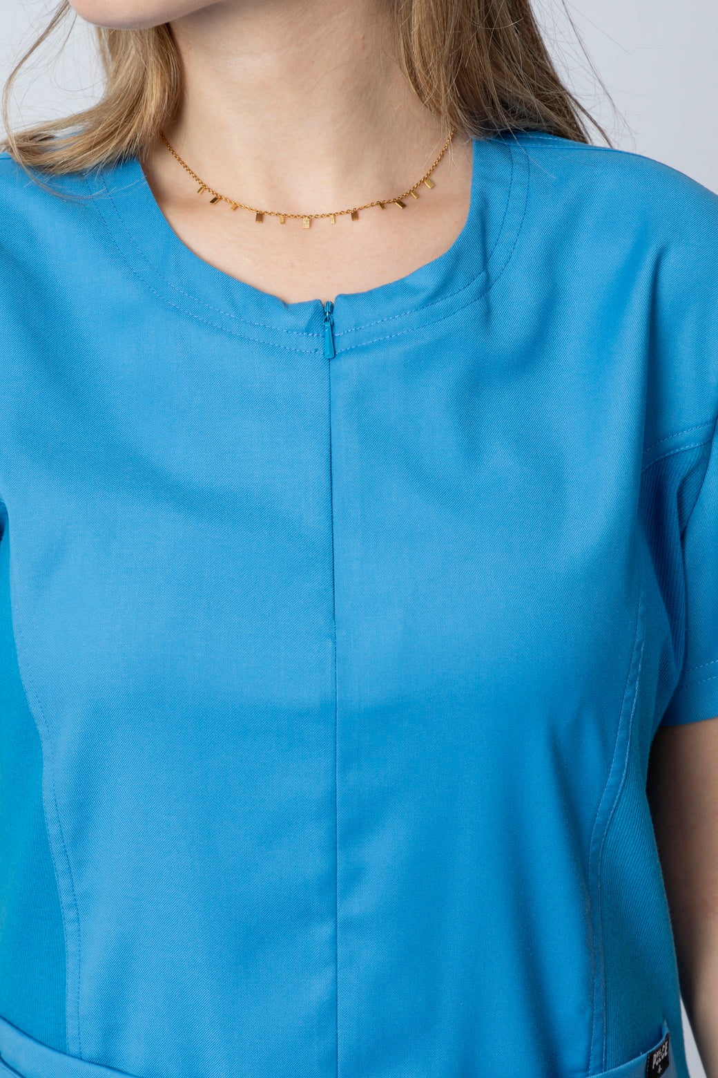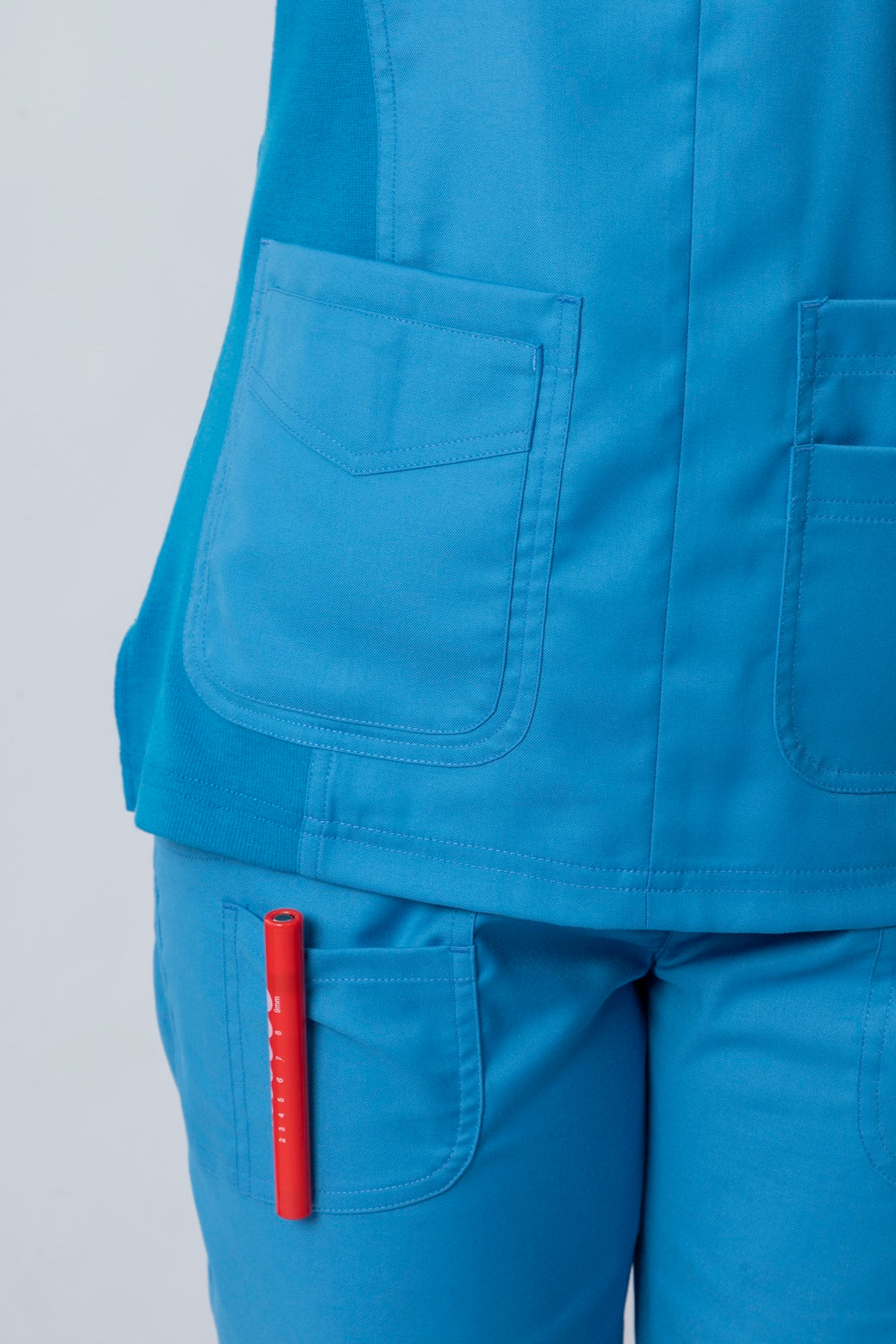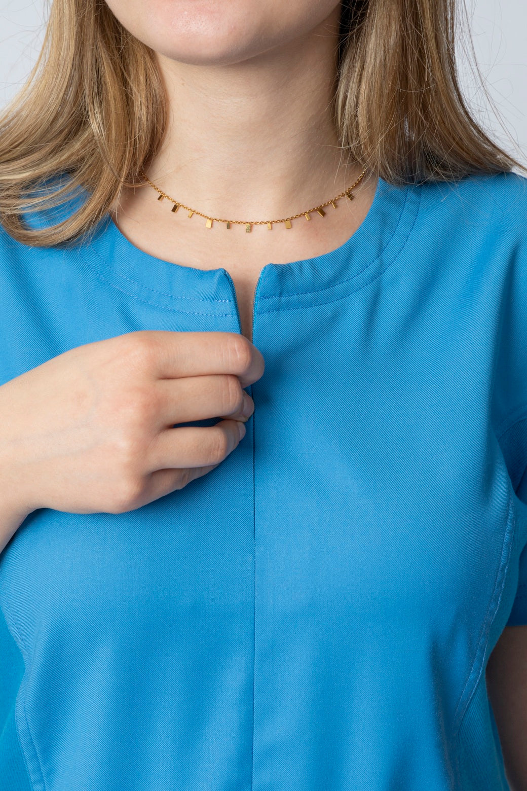 The Crystal Blue color reflects clarity and serenity. Light yet professional, this tone conveys freshness, precision, and calm confidence—bringing a clean, uplifting energy to medical wear while remaining composed and refined.